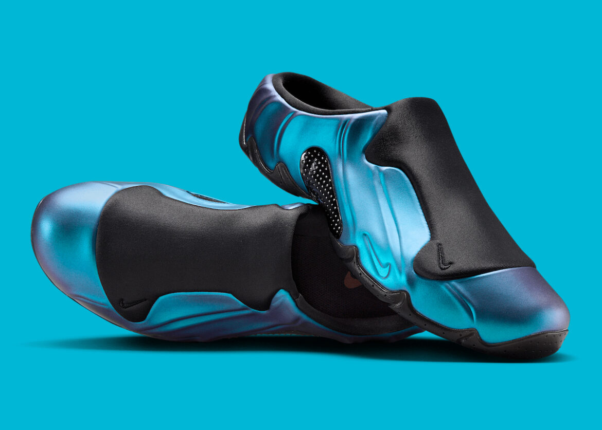 This futuristic mule features a sculpted Foamposite upper in a shimmering blue-green gradient. Its sleek build is paired with Off Noir touches on the tongue, footbed, and outsole, offering a strong visual contrast. Known for its unique shape and streetwear roots, the Clogposite remains one of Nike’s most eye-catching designs.