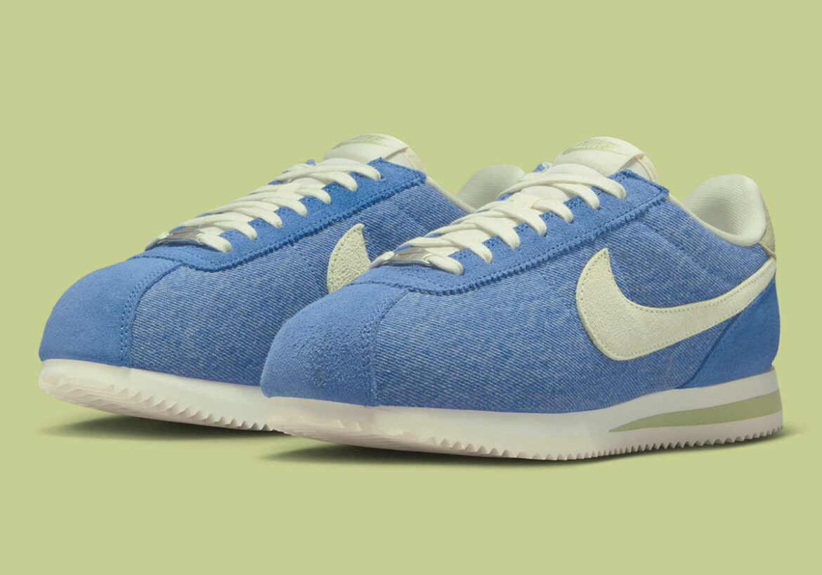 The women’s Nike Cortez “Denim/Barely Green” is expected to land soon via nike.com and retailers, priced at $100. See official images below if these might be worthy of a spot in your summer rotation.
