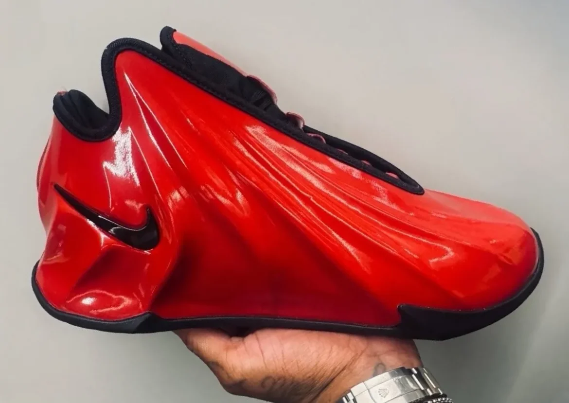 This one’s loud in all the right ways. It’s got red so shiny you could check your reflection, plus black hits on the Swoosh, tongue, and lining. Inside, a snug bootie structure ensures comfort and lockdown—think Foamposite, but with a sleeker future-forward look.