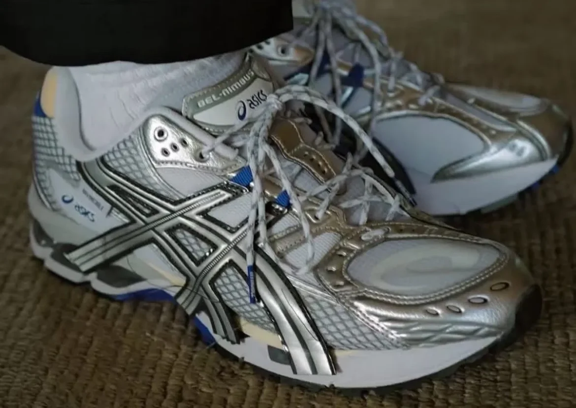 The sneakers boast an intentionally deconstructed look, like your browser when 20 tabs crash. Shiny silver panels pair with black and white mesh, while colored accents appear in bold blue and vibrant green. One pair’s for retail, the other? Likely exclusive to friends, family, and lucky insiders.