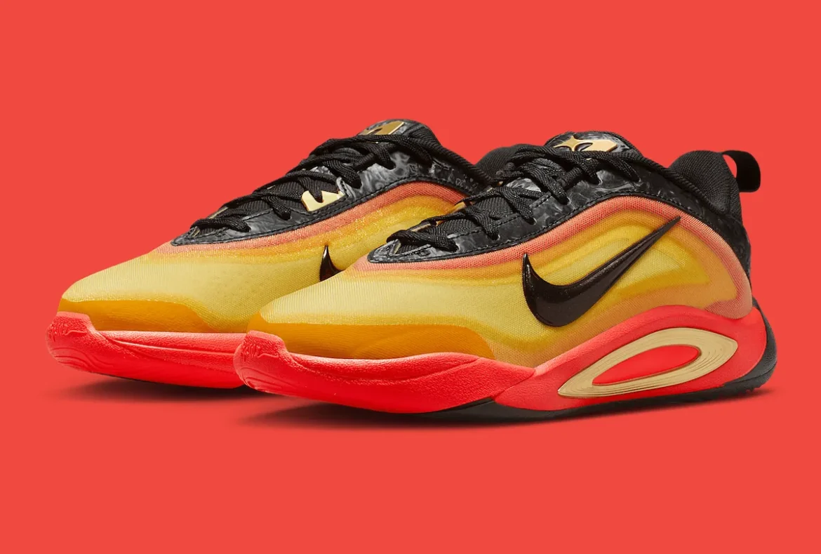 With a blazing fade from yellow to orange, the upper screams summer vibes and playful energy. Black detailing around the collar and heel adds a swirl pattern that mimics the elegant inside of an oyster shell. Yes, it’s classy and cool.