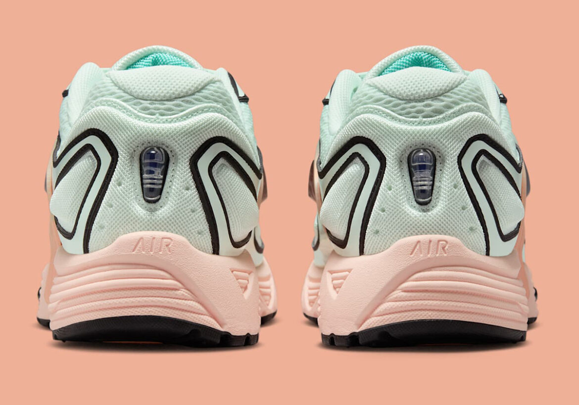 We wouldn’t go as far as to say that the model hasn’t been a success, but it remains readily available all the same, allowing consumers to be a bit more discerning in deciding which colorway options really cut through the mold. Your mileage may vary, but the “Barely Green/Washed Coral” edition at hand goes a long way in cutting through the noise, taking on coastal sunset shades on its TPU cage at the quarter, soaking its mesh upper in seafoam shades, and closing with a rosy sole unit at the bottom.