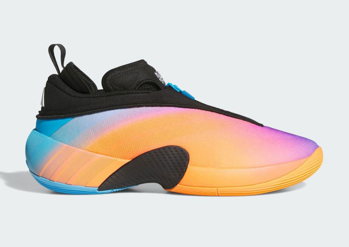 A split-colored outsole—orange at the front, blue at the back—adds grip. Quick cuts? Handled. Style points? Doubled. Mitchell’s logo also appears on the insole and outsole. adidas adds its Three Stripes to the heel to seal the look.