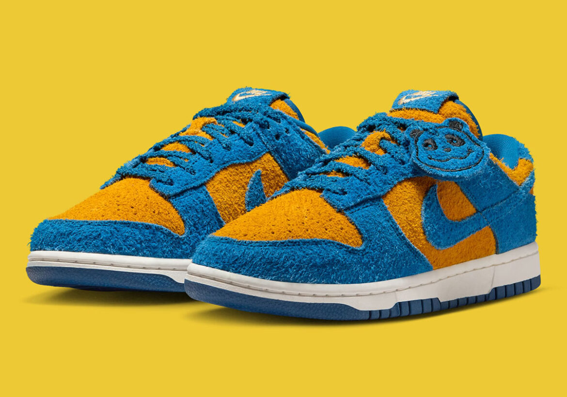 Although not exactly the full hairy upper material, this Dunk Low does its best mimicry of the furry bear’s outer coat with a hairy suede. The loose and rough grains do the job in regards to creating the animalistic effect, reaching just short of an actual pony hair treatment as seen in past Panda Dunk projects from years ago. Beyond the basic white and black, the Swoosh has concocted a bright blue and university gold pairing here, joining the recently surfaced spicy picante red pair for what will potentially be a must-have for Dunk aficionados.