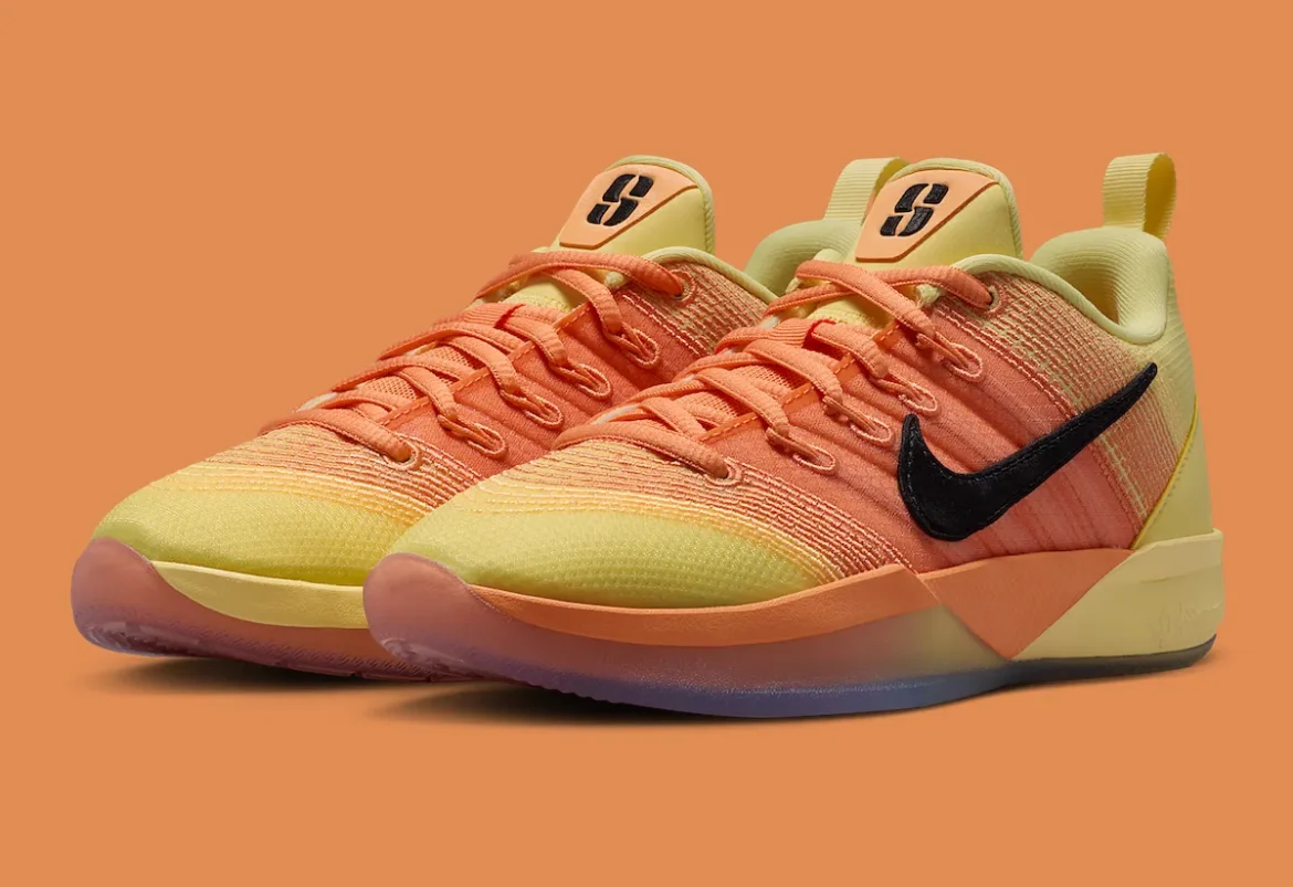 The shoe features Soft Yellow, Orange Trace, and Black, standing out with a summer-ready fade. It joins Nike’s full All-Star Weekend collection, keeping the same low-cut structure from previous Sabrina models.