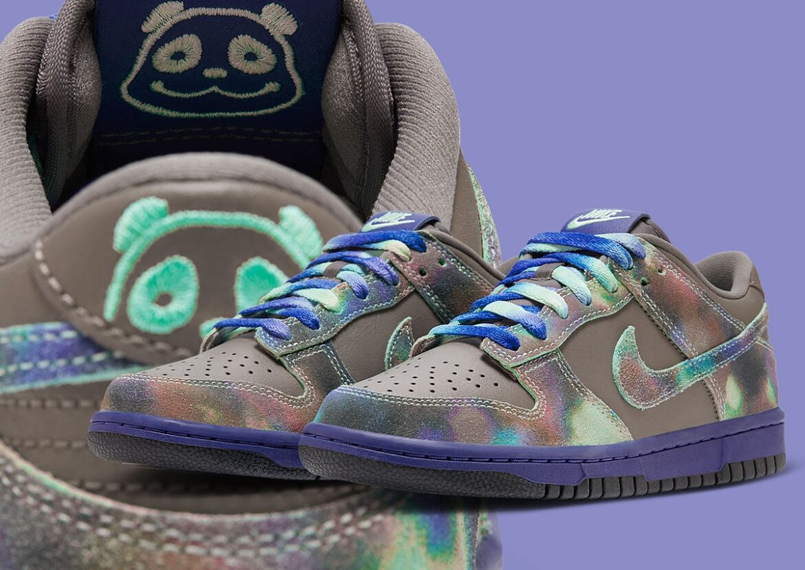 This Dunk Low rocks a colorful combo of green, purple, and pink suede, splashed across taupe leather panels. The tie-dye-style gradient laces bring serious energy, while the bold purple midsole and black outsole keep things grounded.
