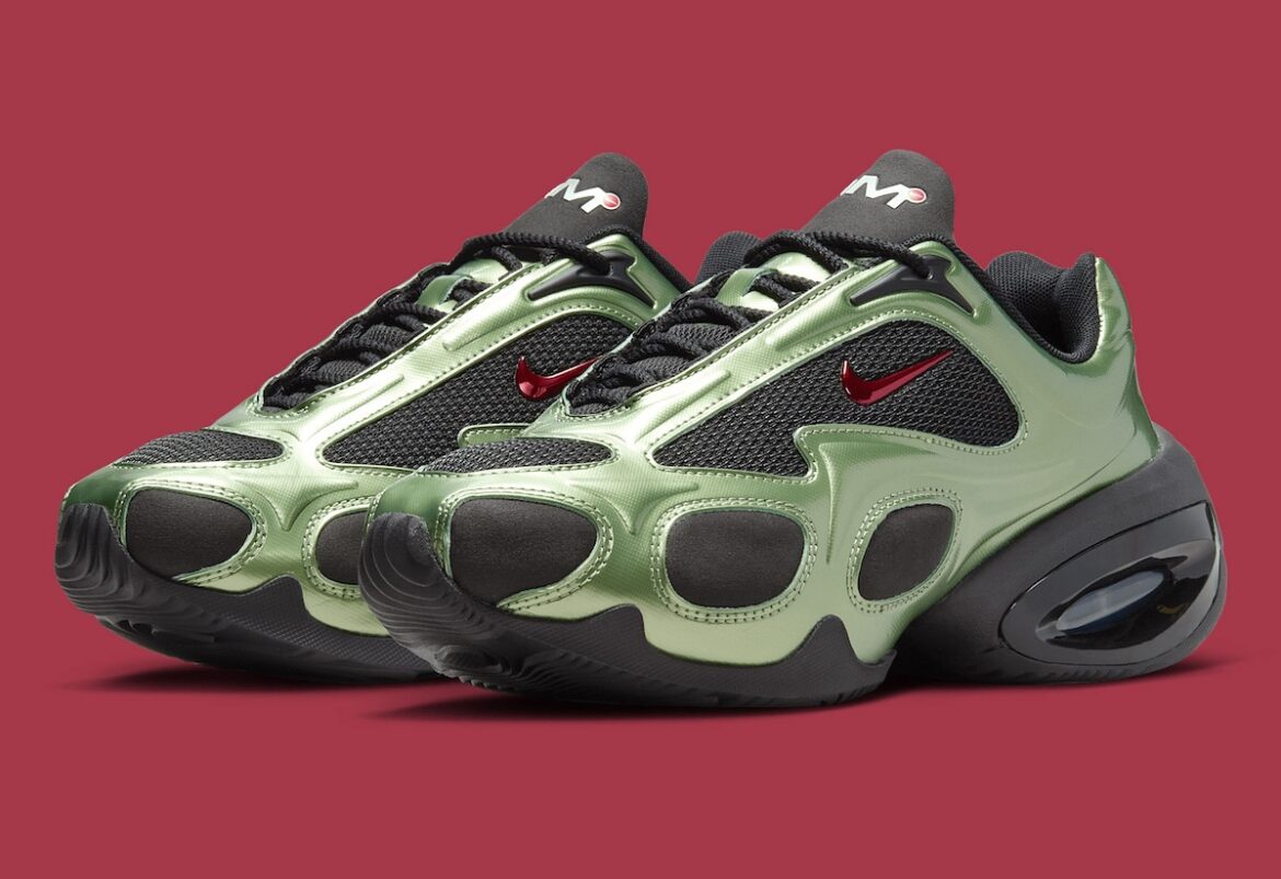 Nike isn’t holding back with the upcoming Air Max Muse “Metallic Oil Green”, and we’re not mad about it. This version upgrades the original “Oil Green” with enough shine to make your feet visible from space—or at least the sidewalk.