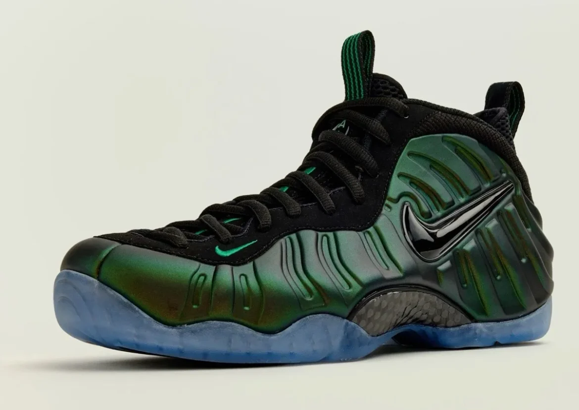 With its iridescent look and classic details, the “Pine Green” Foamposite Pro is back to make waves.