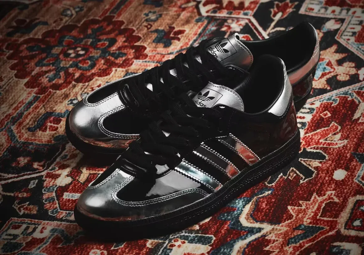 This premium Samba stands out with a high-shine patent leather upper in jet black. Silver chrome overlays add a luxurious touch, which gives it its “Tuxedo” nickname. The glossy finish makes it perfect for fans of bold, fashion-forward footwear.