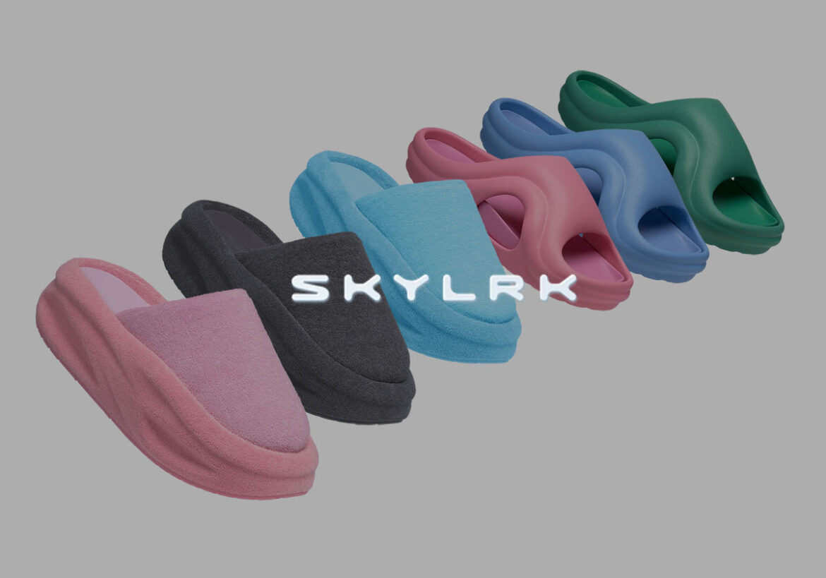 First and foremost is the SKYLRK Chunky Mule; a hefty slip-on featuring a huge sculpted midsole and fuzzy fabric exterior. Blues Blue, Powder Pink, and Smudge (brown) colorways mark the model’s debut, all of which come in at $180. The other half of the footwear slate features a more familiar-looking foam model in the SKYLRK Beach Slide. It appears two pieces make up the slide; one for the footbed and another for the joined upper-bottom portion. Rounded cutouts on both sides highlight the model’s two-piece build, while a wavy ridge wraps around the entire upper. The Beach Slide commands a more digestable $80 price tag and is available now in Cosmo (blue), Gum (pink), and Forest (green) colorways.