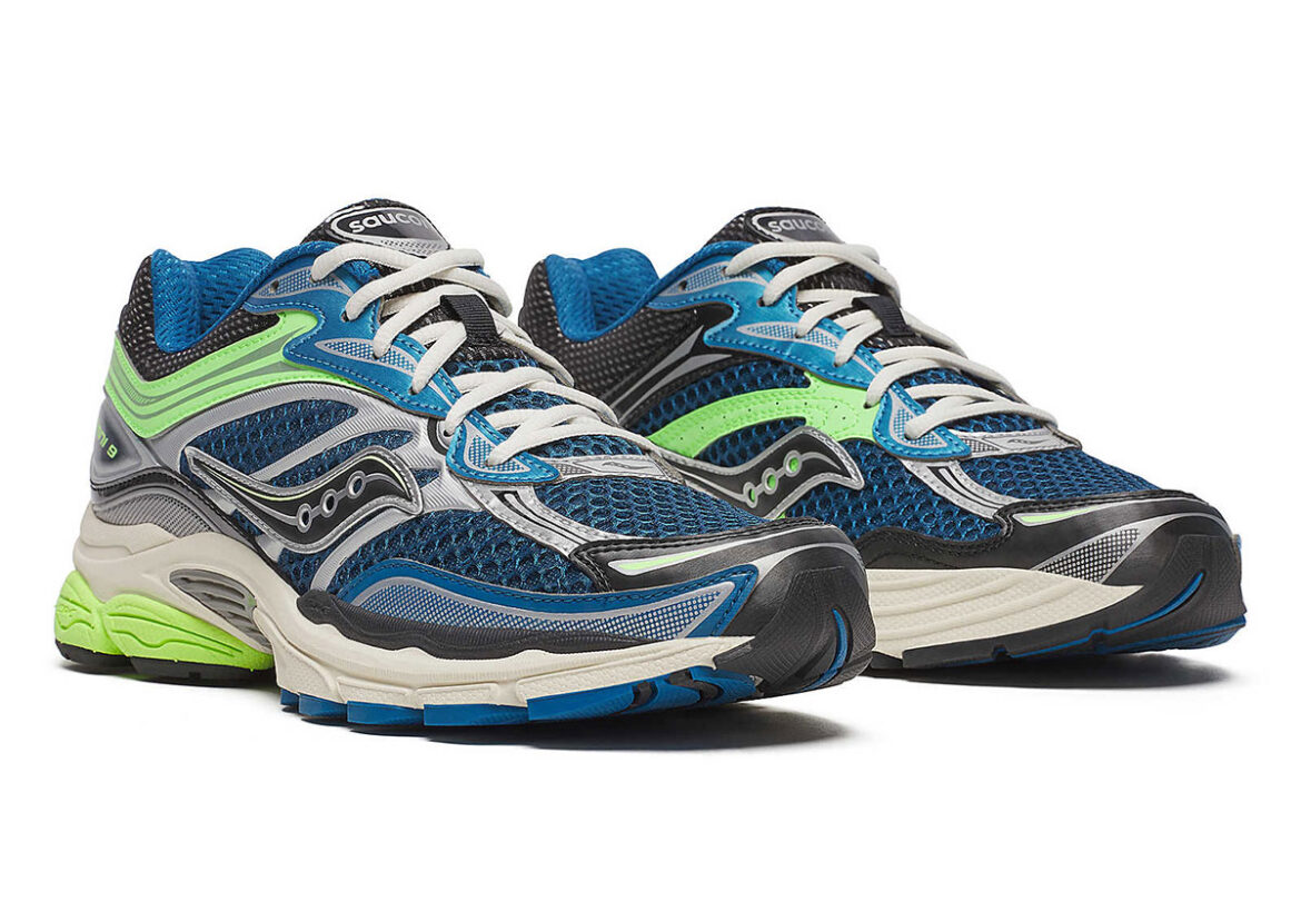 Now shifting away from the metallic aesthetics so prevalent in the Y2K movement, the latest GR look for the Progrid Omni 9 develops more of a throwback sportstyle air, tapping into the primary shading seen on performance models of the era and often leveraged by imprints like Aime Leon Dore. Cut differently, you could reasonably ascribe a “Seahawks” moniker to this colorway, copping Seattle’s primary aquatic shades through the wide mesh base layer and action green tonality centered at the rear. Yet even if you aren’t a 12th man yourself, this pair should be a suitable attendant o footwear trends and a prime candidate to enter the daily rotation.