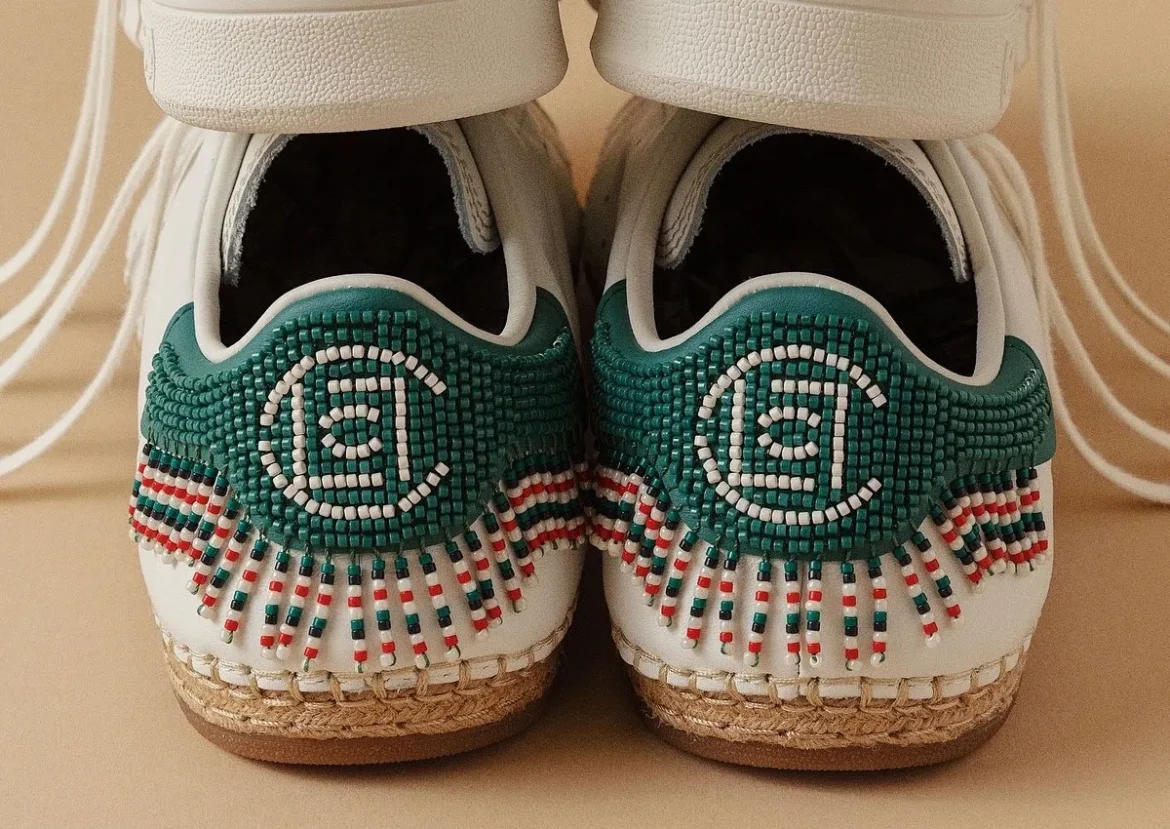 Edison Chen’s design updates the iconic Stan Smith with a stitched espadrille sole and premium leather upper. A standout element is the colorful beaded heel tab, handcrafted in red, white, and green or blue, black, and white color options.