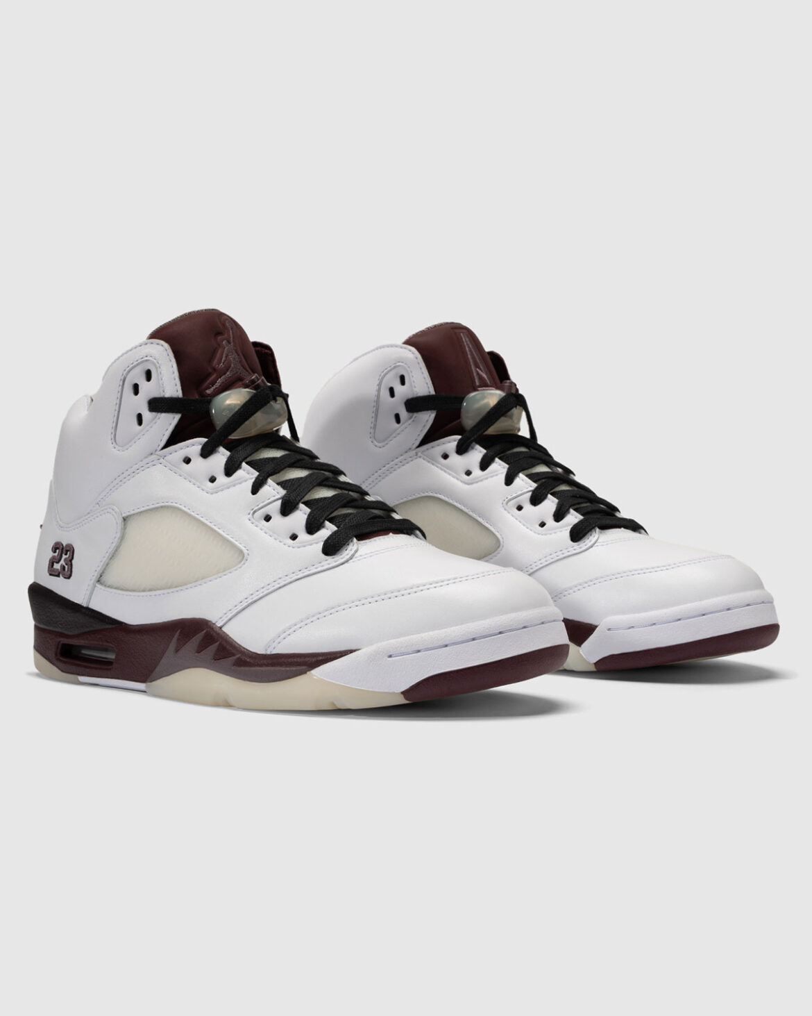 For their upcoming Air Jordan 5 “Black Collective”, they continue the Every Summer Tells A Story campaign that first launched back in June with the Air Max 95 and Air Force 1. A refreshed summer-ready take on their previous Air Jordan 5 collaboration, A Ma Maniére opts for a clean white leather upper with succinct hits of Violet Ore and Burgundy Crush across the midsole, quilted interior, and tongue logo. Nike Air branding appears via the heel and interior sockliner, while the AMM logo proudly appears on the tongue.