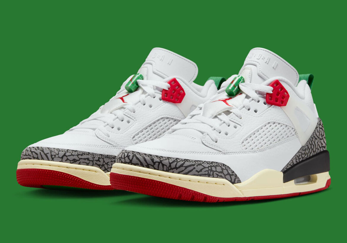 As it turns out, Jordan Brand’s recognition of this achievement will continue for fans worldwide. The same “Do The Right Thing” colorway of the Spiz’ike Low, decorated in sharp hits of red and green on a white upper, yellowed midsole, and iconic elephant print, will eventually hit retail. However, his public release version does not feature the “DTRT 35” tab on the netting nor does it include the 40 Acres And A Mule logo on the lace shroud nor does it include the special lace dubrae.