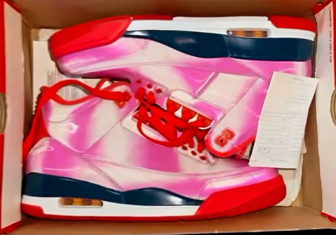An unreleased sample of their Air Jordan 3 “Lotto” has appeared, revealing a drastically different concept and aesthetic that would’ve sent SoleFly in a different trajectory. Seemingly inspired by the flamingo bird native to the area, this AJ3 features a strong, lenticular upper that sees a blast of pink and white that changes colors depending the angle of view. In addition to the bold upper, SoleFly added a super-vibrant red at the toe section of the midsole and a matching interior lining and heel plate. Gone is the elephant print at the toe and heel as well, allowing the shoe to establish even more distance from the original Air Jordan 3 design. SoleFly chose to go with a far more subtler route, opting for a clean-cut color-blocking to match the Florida Lotto stubs with hits of dark green, yellow, bright orange, and pink.
