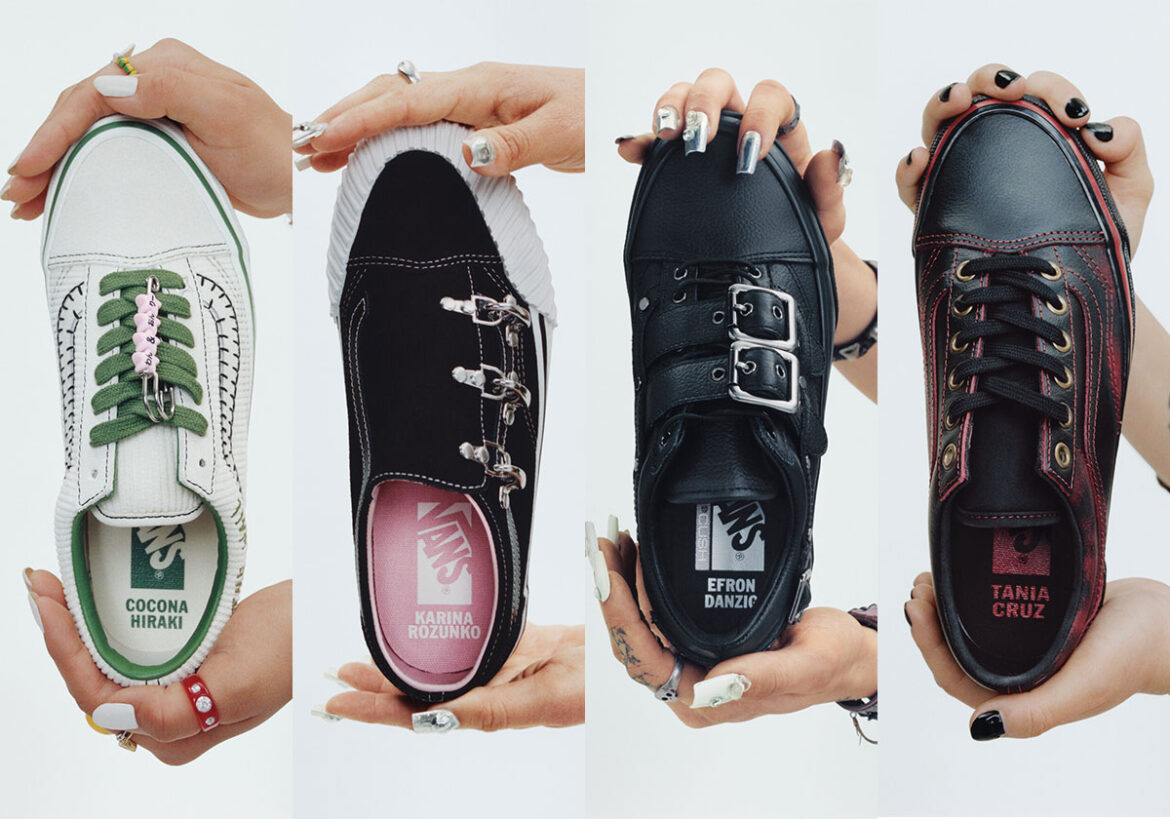 Then come two releases on September 4th, one by surfer Karina Rozunko and another by Tania Cruz. Rozunko’s pair drops the Old Skool’s traditional lacing in favor of a cover with hefty metal pieces, and the midsole is given some serious bulk with an added rubber toe guard. Meanwhile, Cruz distinguishes her collab with an edgy black colorway that gradually fades to red with wear.