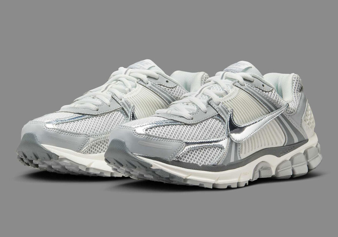 It’s clearly something that Nike, Inc. isn’t shying away from, tackling the concept with fresher formulations like the V5 RNR or Jordan Trunner O/S and its stable of firmer established icons. The Nike Zoom Vomero 5 continues to lead the pack on the Swoosh’s end, doubling down on its throwback composition with a “Metallic Silver” women’s colorway. A chrome Swoosh, already a frequent touch in the backlog, meets off-white mesh meets a similarly steely mesh foundation, contrasted well enough by cream coatings on the TPU heel cip and quarter cage.