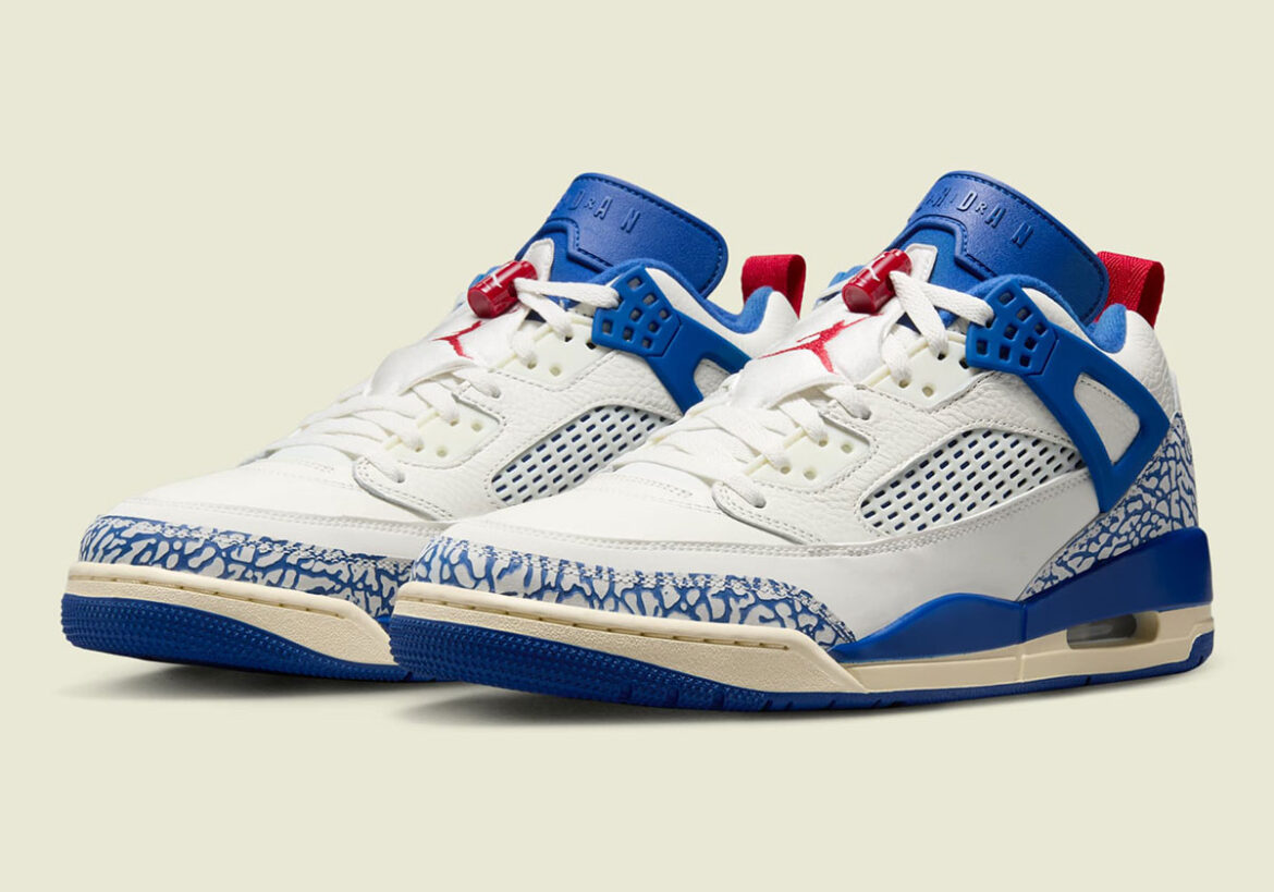 This upcoming Jordan Spiz’ike Low has taken notes, applying that infrequent shade of blue with the perfect package of pre-aged notes in Sail and Muslin. Varsity Red is applied to surrounding details for that classic Jumpman hit. These are basically just short of some yellow-orange stitching to give it that firm Union Los Angeles vibe.