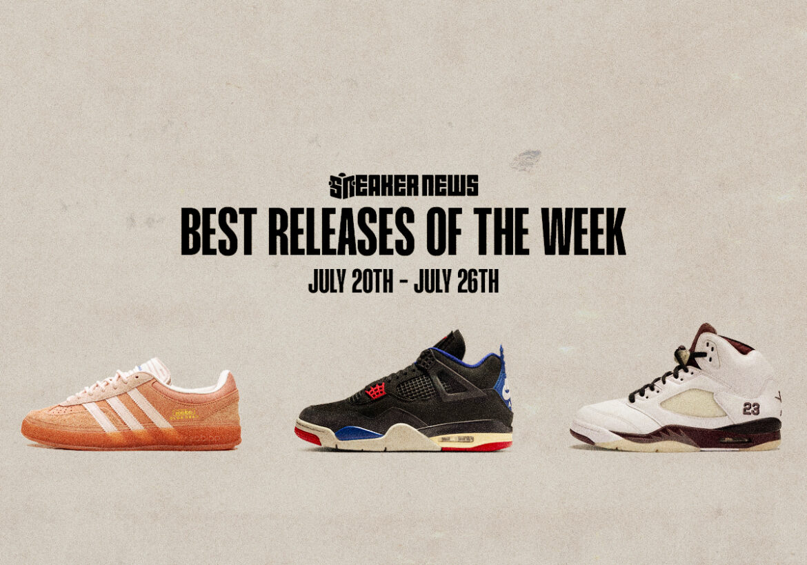 In a real bout, Bad Bunny adidas Gazelle “Cabo Rojo” earns top billing on July 26th, dipping back into one of his most successful silhouettes with inspiration from one of PR’s natural vistas. The Air Jordan 4 “Rare Air” then enters as the most coveted member of the sprawling series. The Beard ensures he’s heard from this week via the adidas Harden Vol. 9 “Dynamo,” a high-octane tonal do-up of his latest.