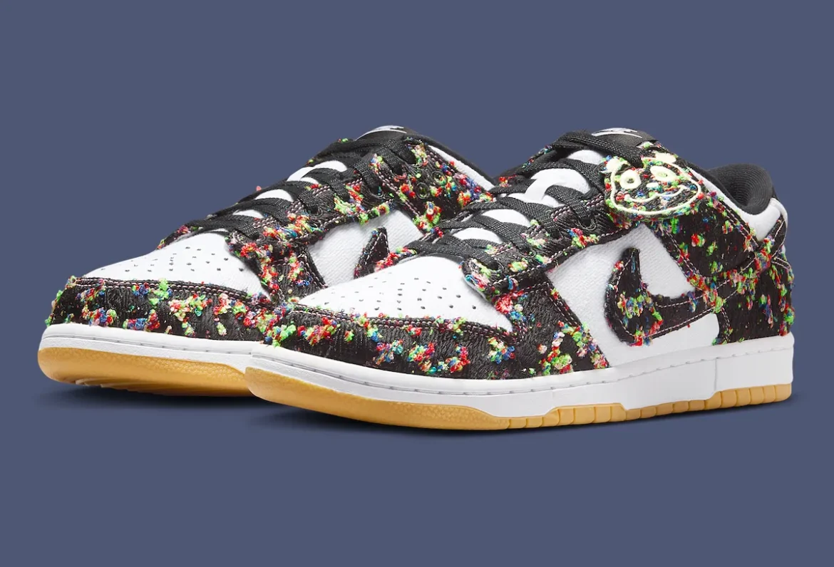 Nike’s latest addition to its Panda Monium series is this Nike Dunk Low “White/Black” edition joining the “Green Curry” colorway. This Dunk twists the standard “Panda” colorway into a multicolor confetti pattern.