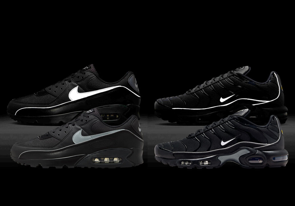 For years now, the Nike Air Max 90 and Air Max Plus have been shoe store staples, largely devoid of real hype but an extremely common sight on city streets as a result of that general accessibility. Perhaps as a way to bring some more profile to the Visible Air icons or maybe just to unite two of the Swoosh’s steadiest soldiers, the Sean McDowell and Tinker Hatfield design are teaming up within an upcoming “Black Reflective” pack.