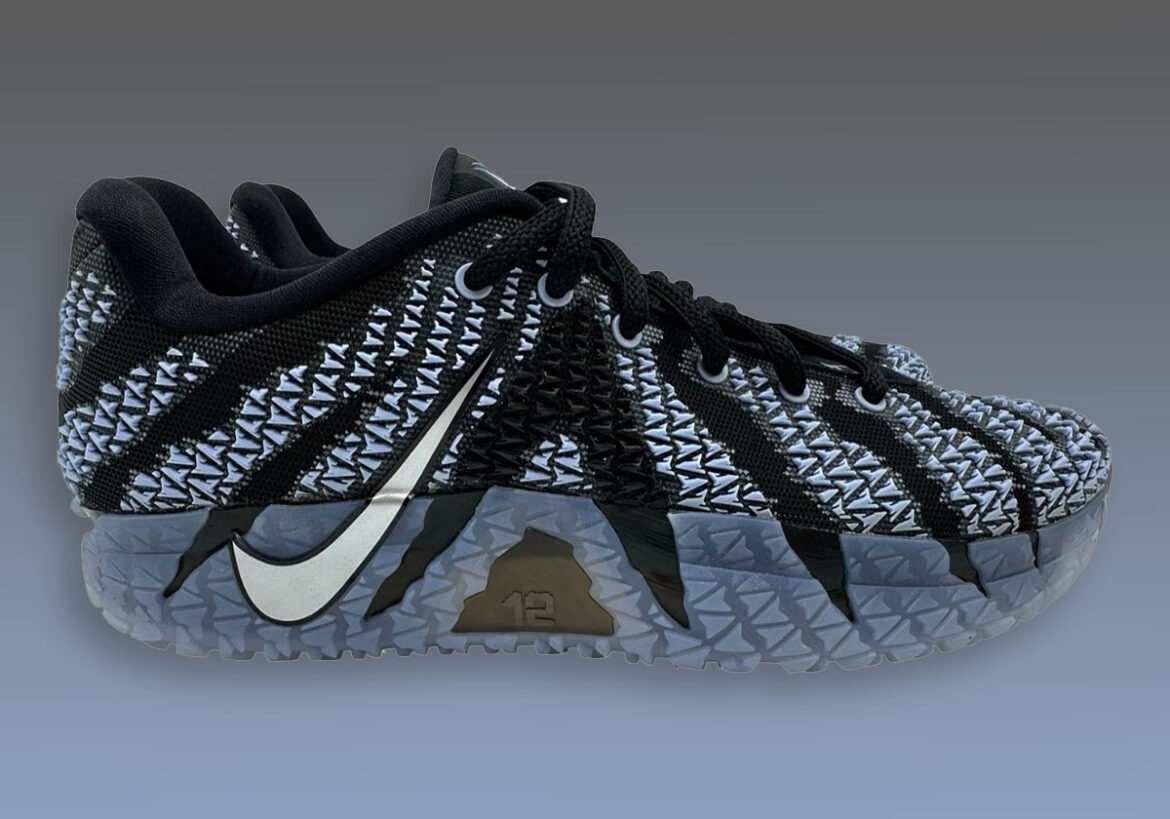 Nike designers strive to turn their athlete’s unique identifiers into what they call “competitive advantages,” and that’s exactly what we see with the Ja 3. Morant’s arrow-like signature logo looms over basically the entire sneaker, providing lockdown up top and traction underfoot. The upper pattern appears in light blue over a black mesh base, while the tread comes in uniform icy blue. The slanted Swoosh around the lateral heel follows suit in light blue, while gold hits on the “12” branding underfoot add some more pizzazz.