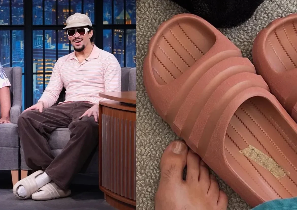 Bad Bunny has received a lot of hype recently, and one of the latest came in the form of his own adidas Slides being spotted on Late Night with Seth Meyers. Appearing next to Happy Gilmore 2 co-star Adam Sandler, the Puerto Rican rapper could be seen sporting an unannounced pair of slides, which may be what he has in store next for the German sportswear giant.
