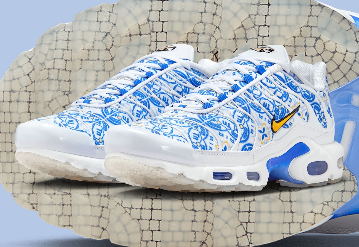 Nike is celebrating Lisbon’s rich culture and vibrant energy with the Air Max Plus “Lisboa”. The new design is dropping in Fall 2025. It boasts graphics that are based on azulejo tilework, which is traditional Portuguese blue-and-white ceramic tilework.
