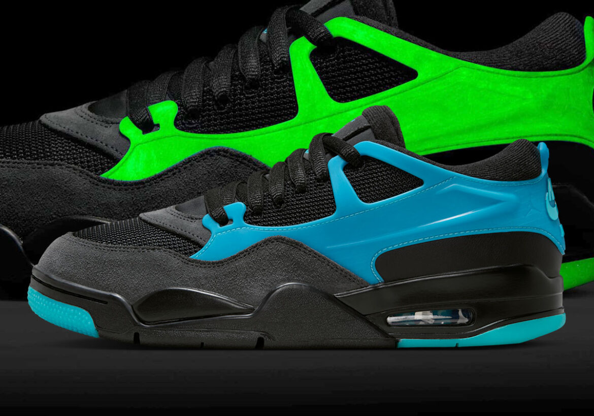 While it’ll be hard to hit the heights of the mid-2010s when seemingly every major Retro release had a half dozen accompanying products, the Jumpman hasn’t shied away from referencing notable upcoming product on a few accompanying pairs. As we careen towards the release of the Air Jordan 11 “Gamma Blue,” the shade makes an appearance on the Air Jordan 4 RM, making its own mark with glow-in-the-dark detailing.