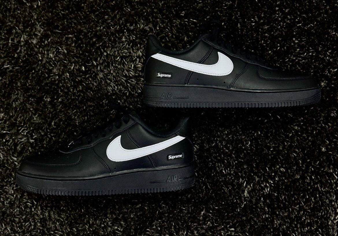 Beginning this FW25 season, Supreme and Nike will deliver their newest take on their easy-going Air Force 1. All black leather uppers are contrasted with white Swoosh logos, while the logo at the heel replaces the iconic red and instead sits flush with its own black background.