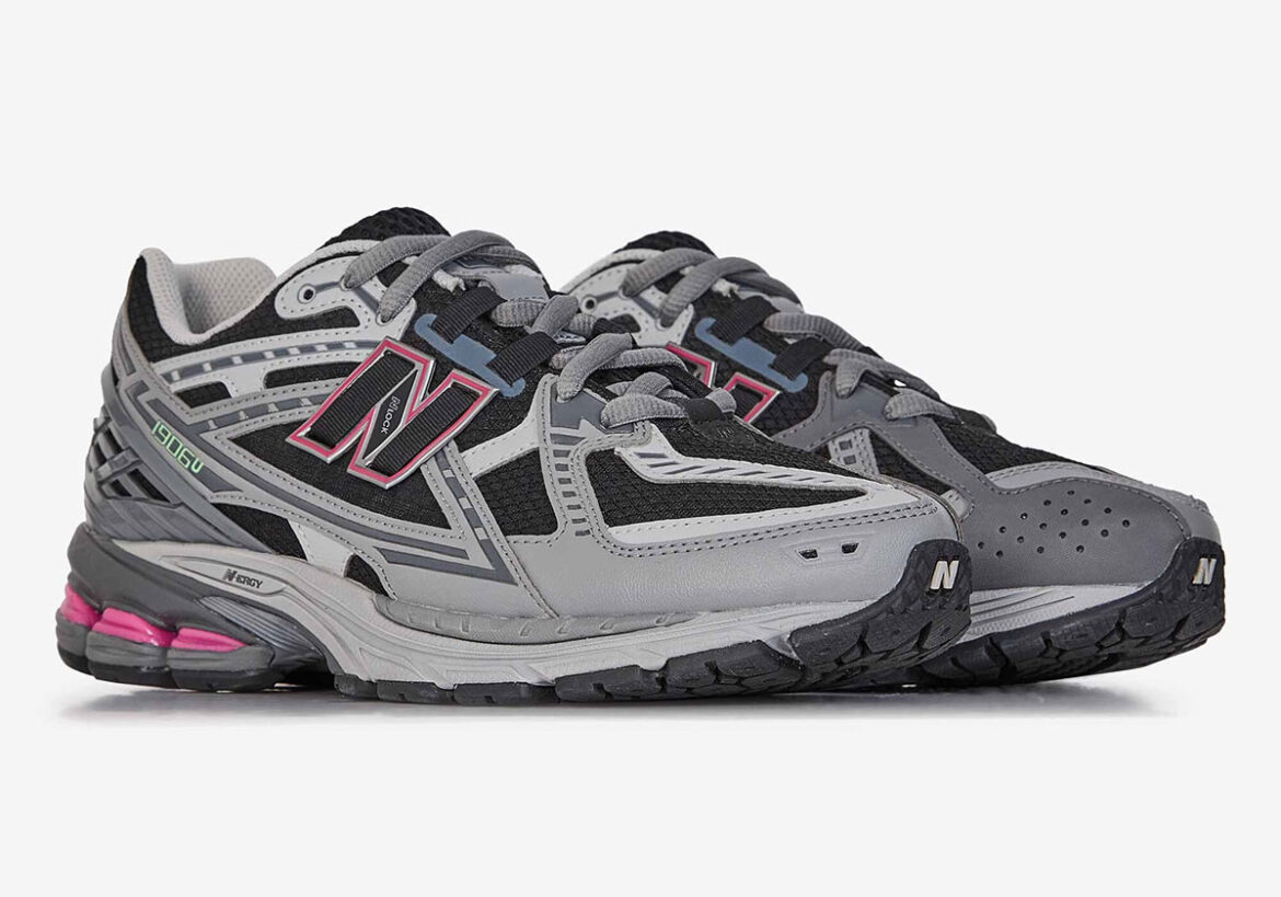 Official retailer images reveal grey leather overlays atop a black mesh base; a tried-and-true design formula we’ve seen time and again from the New England sneaker giant. There’s a comparison to be made to the recent “Pink Taffy” 1906R, with hot pink accents cropping up around the N-lock logo and ABZORB SBS cushioning. We’re also hit with some subtle light green hits on the “NB” heel text, “1906U” on the lateral side, and insoles.