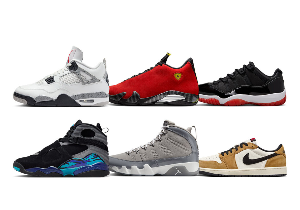 Six sneakers are hitting nike.com on August 5th; three at 10:00 AM EST (many sizes are still available) and three more at 1:00 PM EST. Included in the first batch are the Jordan 1 Low OG “Rookie Of The Year,” Jordan 9 “Cool Grey,” and Jordan 8 “Aqua.” The afternoon drop consists of the Jordan 14 “Ferrari,” Jordan 11 Low “Bred,” and Jordan 4 “White Cement.” Some of the includes sneakers, particularly the “Ferrari” 14s and “White Cement” 4s, are currently going for above-retail on aftermarket sites, so we’re expecting those in particular to move quickly.