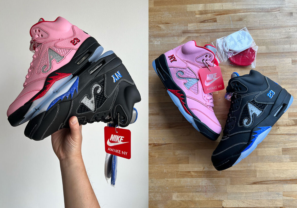 First confirmed by Sneaker News last October, the Awake NY x Air Jordan 5 is a two-pair event. Awake NY has owned the “pink sneaker of the year” with the Bubblegum edition, easily winning the hearts of many for its striking hue and the call-out to the original “Fire Red” colorway from 1990. The Black/Racer Blue edition acts as the perfect ode to New York City, marked by the streetwear label’s signature blue shade while nodding to NYC’s affinity for black footwear for all occasions.