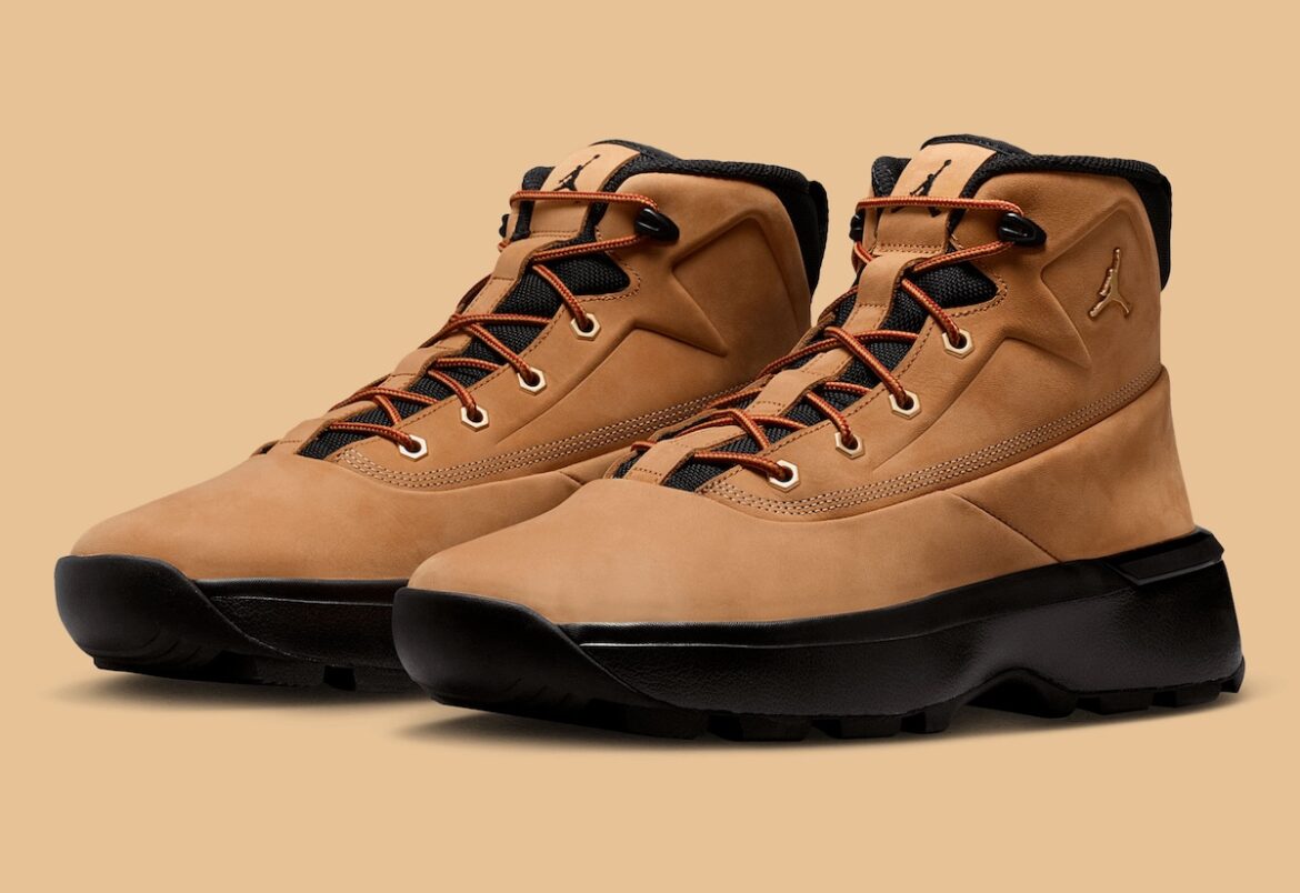 A wheat nubuck upper has obvious parallels to Timberland’s signature boots while integrating Jordan Brand’s modern styling.