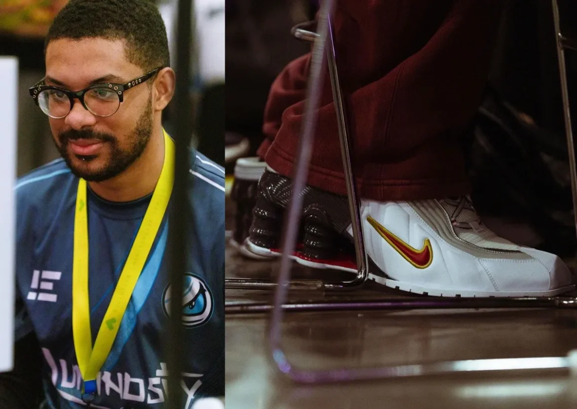 SonicFox wore the look courtside with a pair of Martine Rose track pants, resulting in a vivid and maximalist look that cements Nike’s clear intent on capturing the attention of the esports and gaming community with past digital-forward releases like the .SWOOSH-led “Big Head” Air Max 1 and “Rage Quit” Total 90 III.