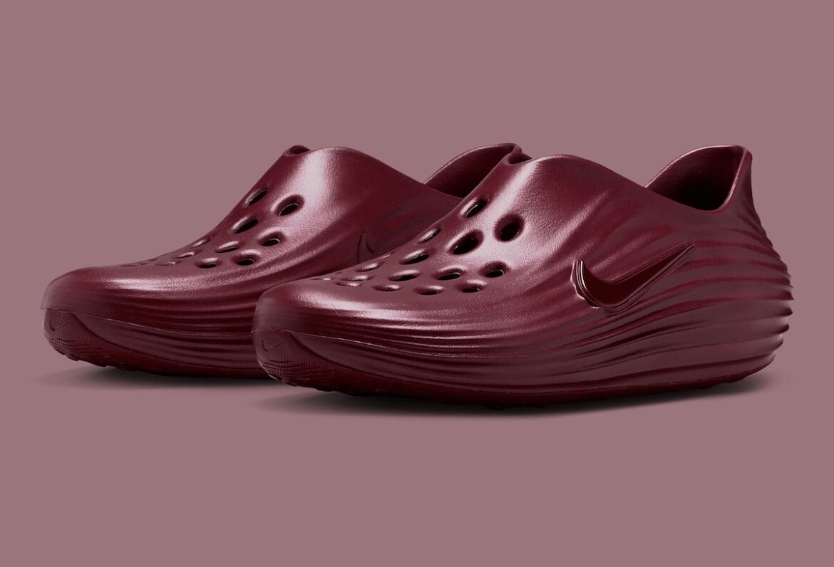 Nike’s line of slip-ons with plush underfoot cushioning will continue to grow in 2025, with the new Nike ReactX Rejuven8 “Dark Team Red” dropping Fall 2025.