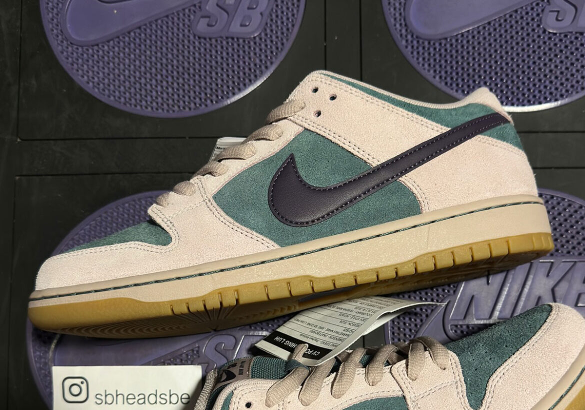 Unveiled by trusted Nike SB leak source @sbheadsbe, the sneaker features a suede upper consisting of grey overlays and a teal-ish “Mineral Slate” base. A dark blue/purple shade falls on leather Swoosh logos as well as the insoles, while a white midsole and “Light Gum Brown” outsole make for a familiar finish underfoot.