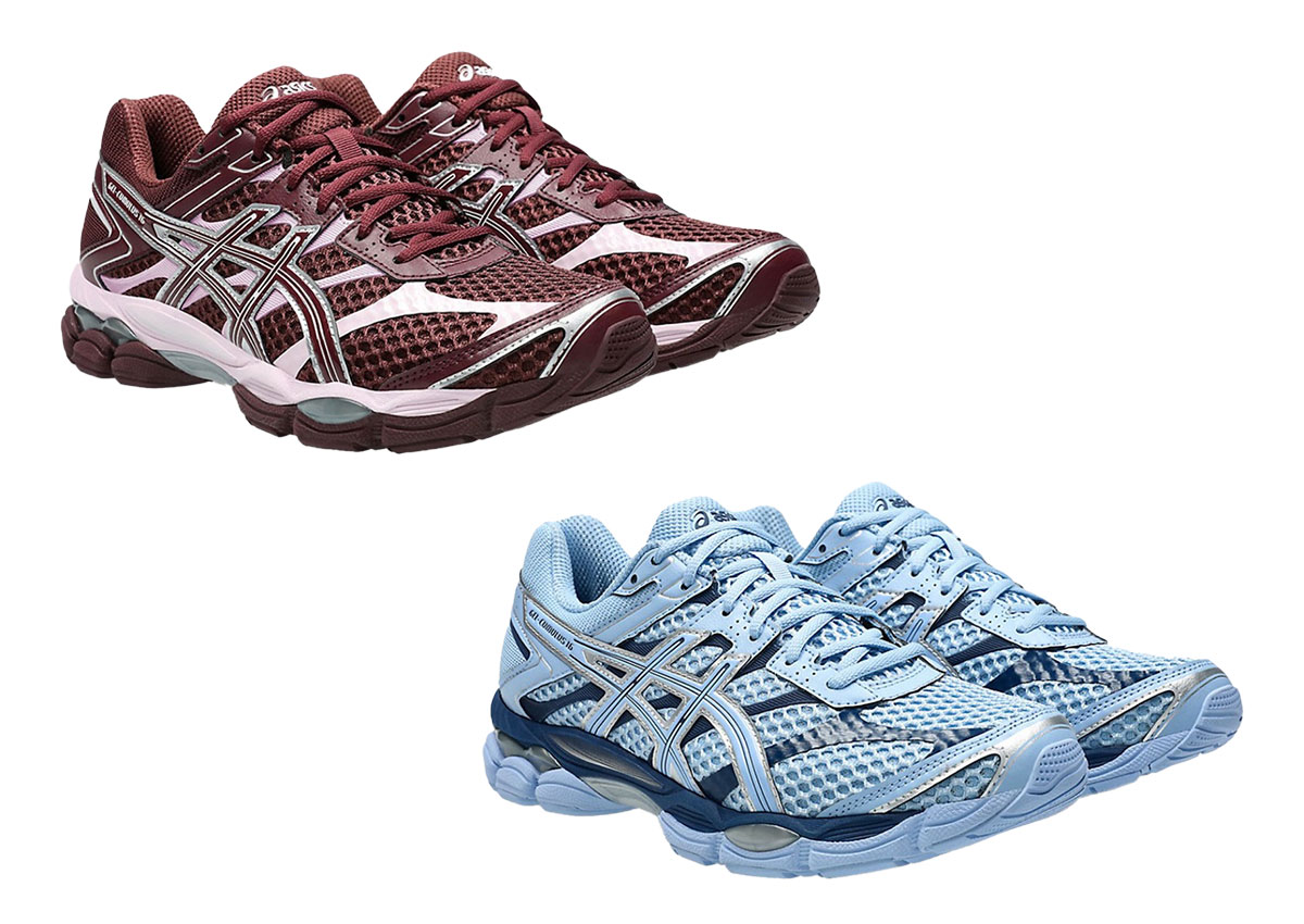 The Pink colorway is a more aggressive take. Burgundy mesh and soft pink accents are paired with metallic silver ASICS branding. The deeper and brighter color contrasts create an eye-catching combination for fans looking for a little more punch.