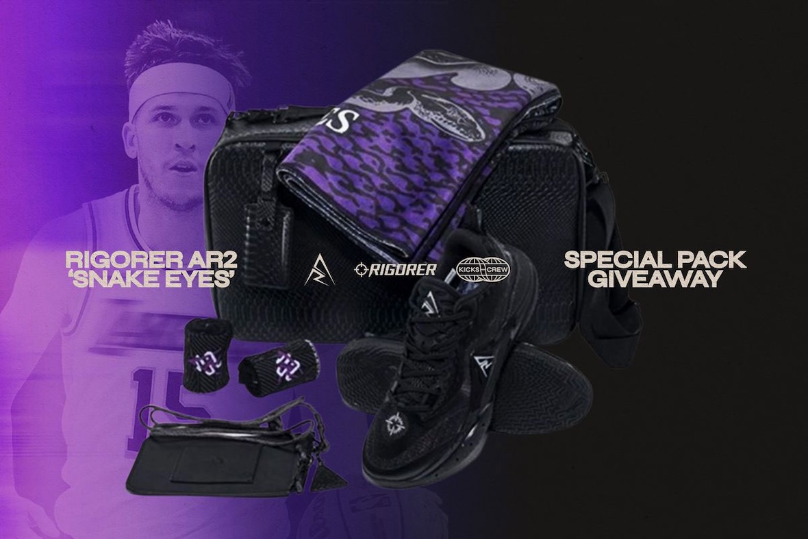 To commemorate the drop, KICKS CREW has partnered with Rigorer on a complimentary capsule collection, which includes the AR2 “Snake Eyes” and several premium accessories like a carry case, towel, and more.