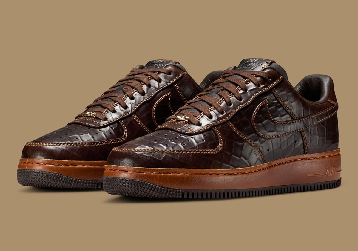 The Nike Air Force 1 Low “Croc Skin” in “Fauna Brown” is due out Fall/Winter 2025 for $140; see official images below if these speak to your taste.