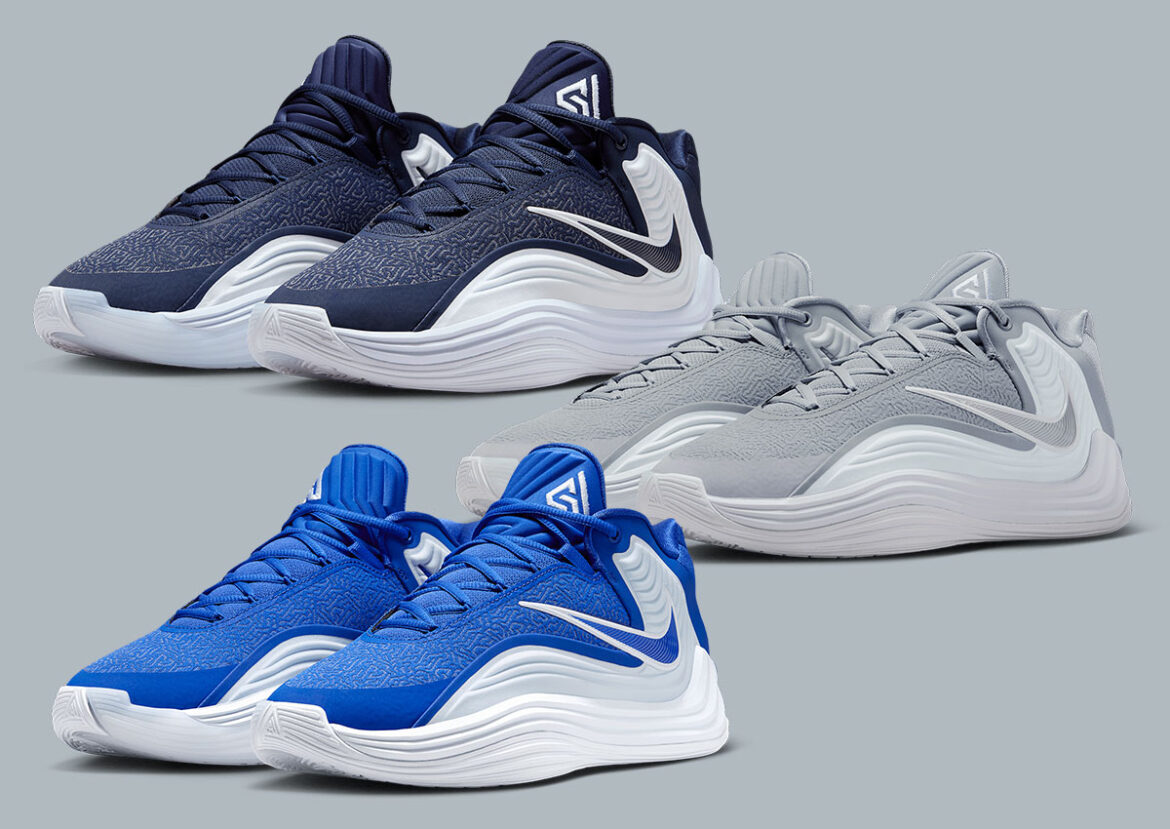 Retailers will have Royal Team Royal/White, Wolf Grey/White, and Navy/White to choose from. It features the streamlined low-top silhouette, sculpted midsoles, and oversized Swooshes that swoop up the back of the heel. The player’s logo is visible on the tongue. Giannis’ “Team Bank” edition is another chapter in the evolution of his personal line.