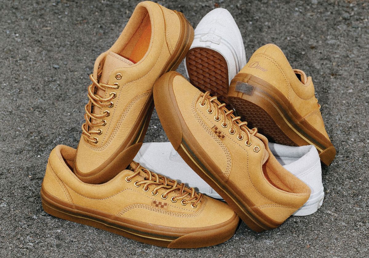 For this debut, two tonal looks drape the Dime x Vans Skate Era Stub. One approaches all-white before breaking up that comprehensive palette with blue and white stripes in the midsole, while an earthier counterpart gets even closer to a flooded-out look, bracketing all-tan uppers with a darker gum sole. The Dime x Vans Skate Era Stub releases on August 30th via Dime channels, at the brands’ Glory Challenge in Montreal, and at select Vans Skateboarding accounts.