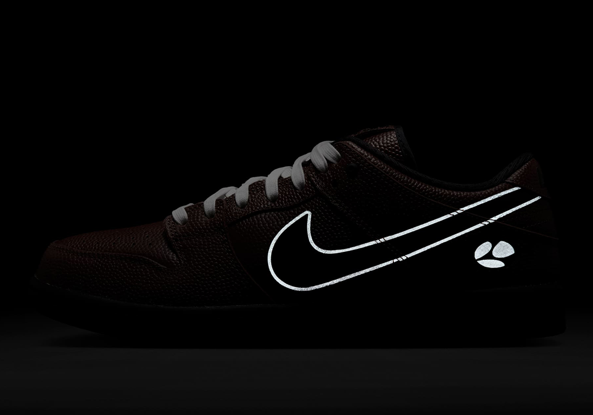 For their part, Limosine Skateboards doesn’t turn down the opportunity to usher in a genuine make-over. Already known to us since our first look was the football leather overhaul, gracing the upper of the sneaker with pebbled brown leather for a true-to-sport ode to the gridiron, continued with a crossed lace arrangement imprinted onto the tongue. A graphic Swoosh and Limosine Skateboards logo hit on the back of this SB Dunk Low round things out aesthetically, with 3M trim adding a glow-in-the-dark aspect to this collab.