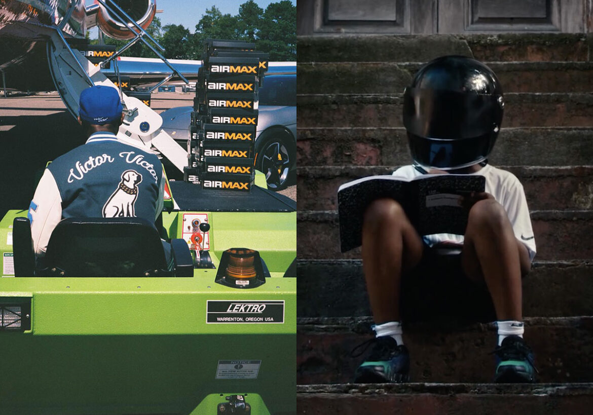 A glitzy tarmac shoot tacitly announced the project, depicting the executive on steps away from a private jet, with a fleet of Air Max DN8 boxes between it and a Ferrari, bolstered by a “Pure Platinum” pair on feet. A social media teaser, set to the music of former signee Pop Smoke, shines light on the shoe’s inspirations, depicting a boy on a stoop with an astronaut helmet before giving the same treatment to the Victor Victor logo.
