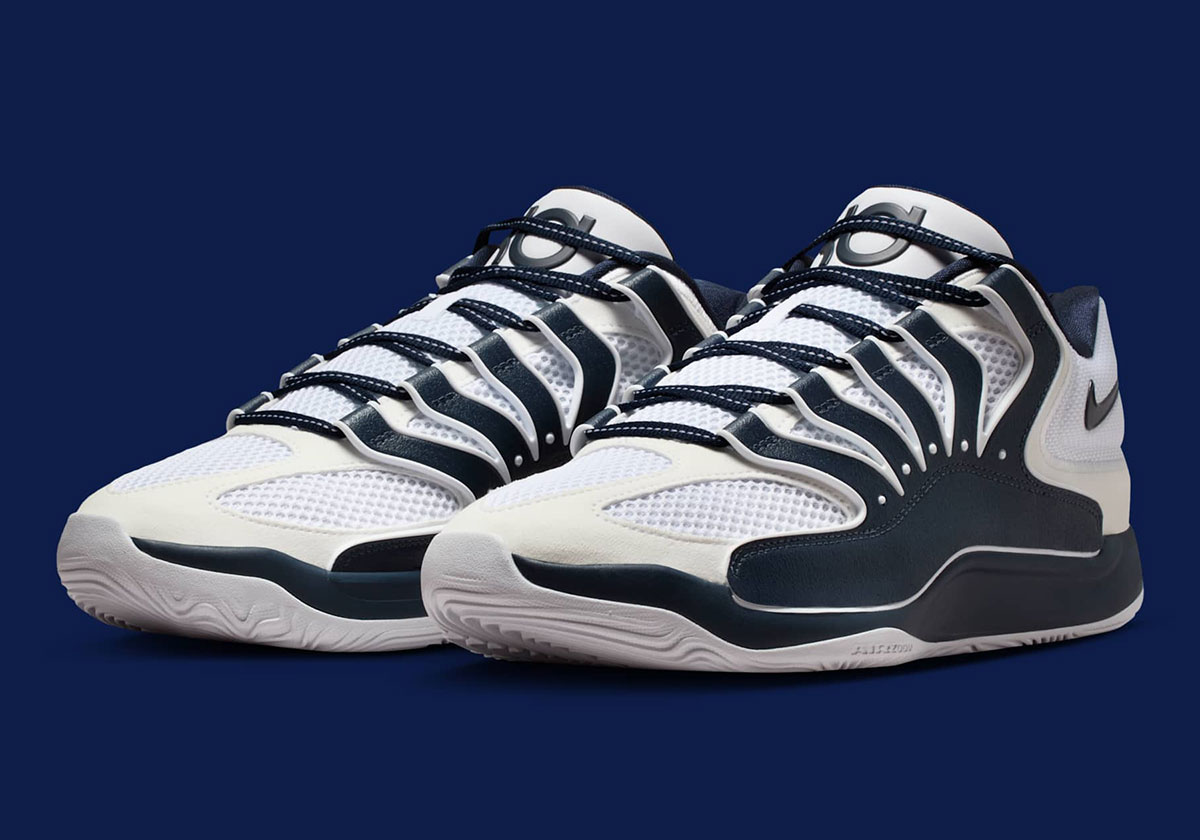 The Nike KD 18 “White/Navy” should be hitting retailers and Nike.com for September 2025, retailing for $155. Catch official images below and watch our Sneaker Release Dates page for more info in the coming weeks.
