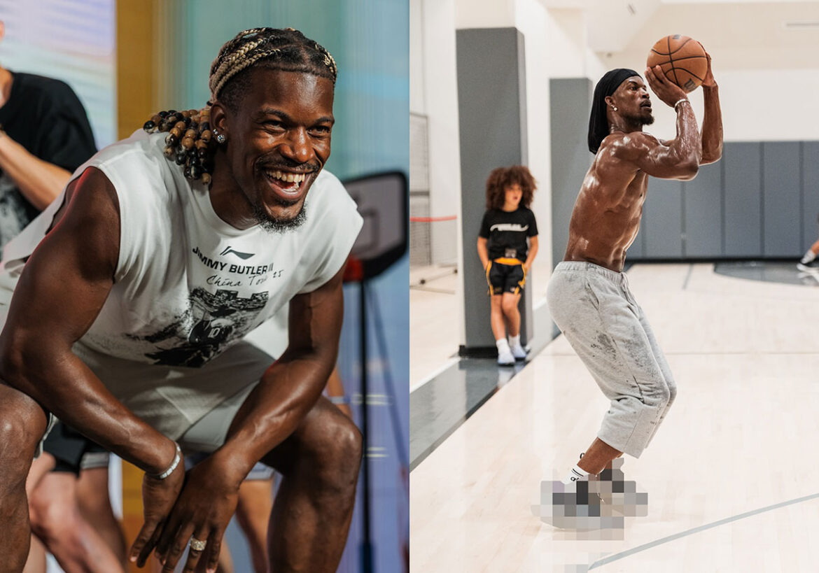 Dropping teasers on Instagram, Jimmy shared some photos/videos of a workout session with teammate Draymond Green, opting to pixelate his feet to obscure his footwear on a few slides. In a few other flicks, he’s seen wearing his current signature model, the Li-Ning Jimmy Butler 3; that model launched less than half a year ago, so our best speculation is that Butler is wear-testing his next mode, the Li-Ning JB 4, in the teasers.