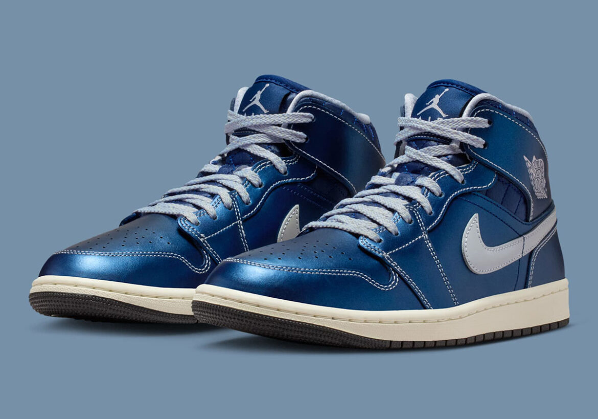 The Air Jordan 1 Mid Issues A Shimmering “Metallic Blue”