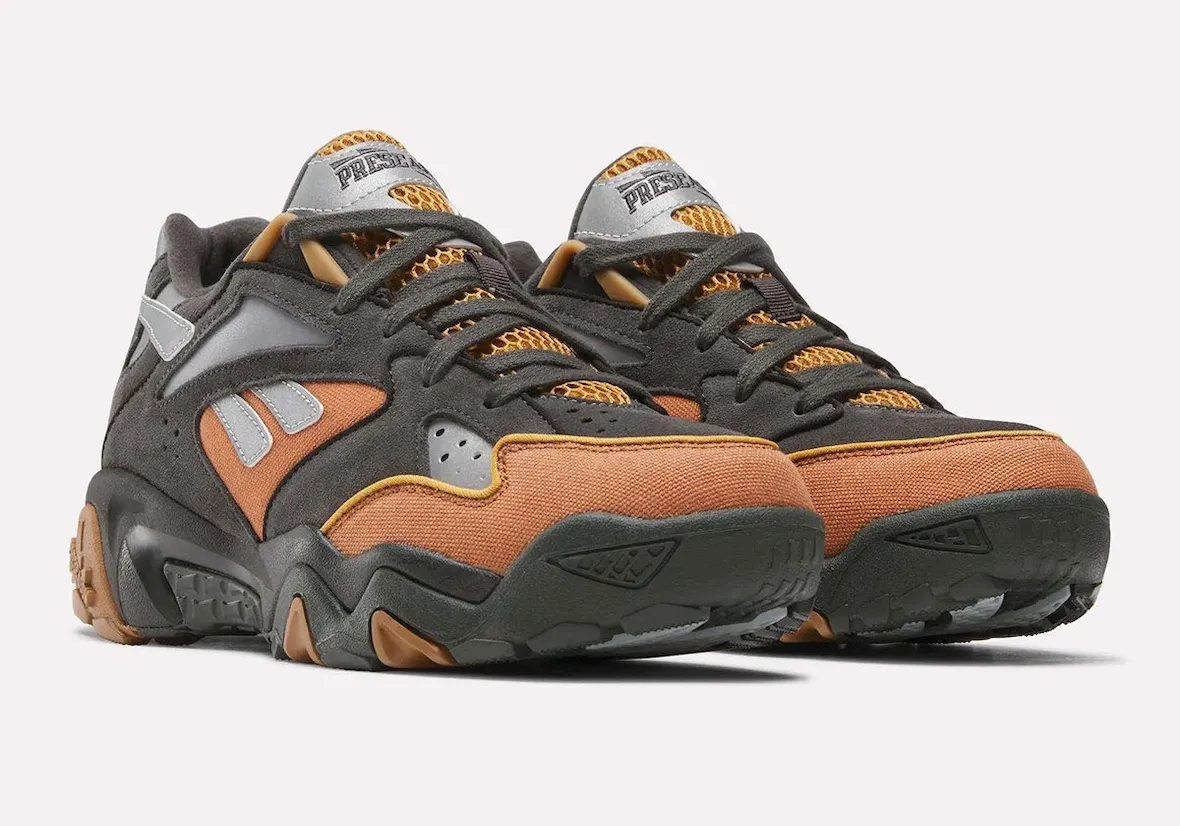The Reebok Preseason 94 does so in a blend of earthy colors. Burnt orange textiles are contrasted by dark charcoal suede overlays. Metallic silver detailing hits the side panels and tongue, while big “Preseason” script makes an appearance on the lace shroud. A gum outsole with aggressive tread work ties the build together and gives it that trail-inspired edge. Compared to the lifestyle-driven Club C collabs to date, this silhouette leans into that durability and functionality. It’s the combination of heritage hoops design and outdoor flair that really makes the shoe stand out.