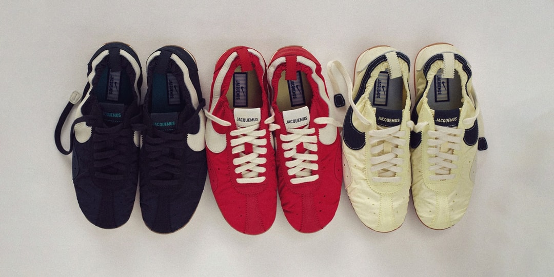 Now, Jacquemus has officially unveiled the collaboration, offering a detailed look at the three colorways of “Black,” “Pale Yellow 2,” and “Dark Red.” Each shoe features a deconstructed upper with retro Swooshes on each side, Jacquemus branding at the tongue, and a co-branded waffle sole in gum brown. The “Black” version is accompanied by off-white and green notes while the “Pale Yellow 2” iteration favors black detailing and the “Dark Red” also combines with off-white and black.