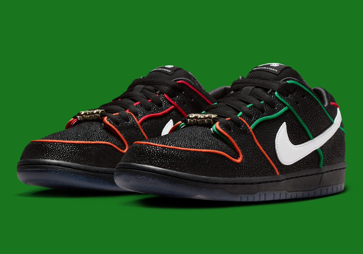 Bronx Girls Skate is dedicated to fostering and expanding the skateboarding community, and their Nike SB Dunk collaboration highlights what brings New Yorkers together: the subway. The Dunk Low features orange piping for the B and D trains, green for the 4, 5, and 6, and red for the 1 and 2. On the heel, metallic gold “NY” charms nod to the now-defunct yet still iconic New York City subway token. Graffiti-inspired “BXGS” graphics on the inner tongue reference Bronx street art, joined by a train motif and a “GS” stamp on the outsole. Gold lace dubraes engraved with “BXGS” evoke subway cars, while the collective’s full name appears on the tips of the included black and white laces.